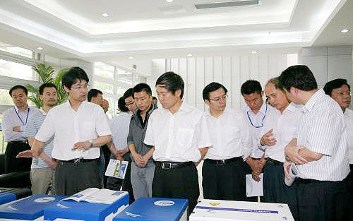 江蘇信息產業園是無錫市政府與深圳清華大學研究院合作建設的一個高科技園區。短短2年多時間,園區已集聚高科技企業88家,在傳感網、高清數字等高科技創業領域實現了一系列關鍵技術的突破。徐南平認真聽取了江蘇數字信息產業園總經理賈天喜的情況介紹,參觀了園區展示廳、山億新能源股份有限公司,對園區堅持市場化、產業化運作,在技術支撐、孵化體系、資本經營等方面所取得的創新成績給予充分肯定。