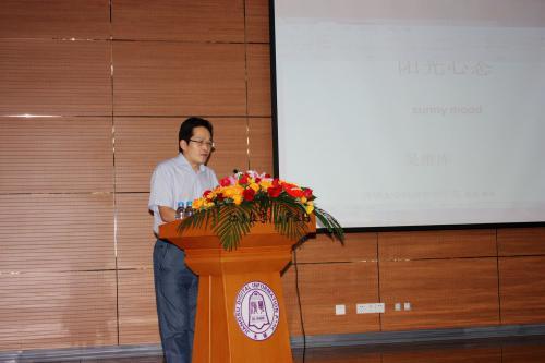 “別把自己看太重,否則會(huì)失重;別把自己看太高,否則會(huì)失落”,“ 活在當(dāng)下,珍惜今天,活在過程中”……在3個(gè)多小時(shí)的講座中,吳教授用翔實(shí)生動(dòng)的案例、幽默風(fēng)趣的語言,深入淺出地闡述了陽光心態(tài)對(duì)人產(chǎn)生的積極作用,提示人們要注意改善心智模式、修煉心理內(nèi)功,積極尋找快樂、分享快樂,激發(fā)人們要善于發(fā)現(xiàn)、發(fā)掘工作生活中的美,善待失望、失意、痛苦、缺憾、失敗,克服焦慮,引導(dǎo)大家從不同的角度看待身邊的人和事,培養(yǎng)健康、平和的心態(tài)和積極的生活態(tài)度,讓理智、和諧、積極、健康和充滿關(guān)愛的陽光根植于心田,不斷提高自身的幸福指數(shù),實(shí)現(xiàn)自己與自己的和諧。諸多充滿智慧與哲理的觀點(diǎn)以及具有深度和指導(dǎo)性的理論,引起了大家的共鳴,博得了大家陣陣掌聲。