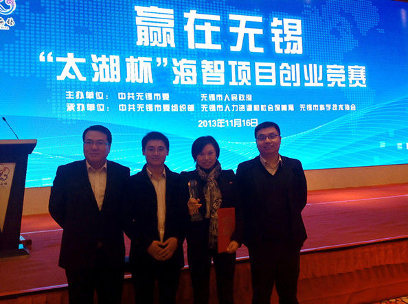 20131116日下午,作為第三屆中國(無錫)海智洽談會暨“東方硅谷建設推進會“重頭戲”之一,由無錫市委、市政府主辦,無錫市委組織部、人社局、無錫市科協承辦的“贏在無錫——‘太湖杯’海智項目創業競賽”活動在無錫舉行。
