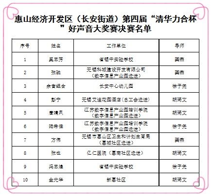 1210日下午,由無錫惠山經濟開發區管委會、無錫市惠山區長安街道辦事處主辦,由長安街道總工會、長安街道教育文體辦、江蘇數字信息產業園共同承辦的第四屆“清華力合杯”好聲音大獎賽復賽在江蘇數字信息產業園清華創新大廈火熱開賽。參加本次大賽復賽的18位選手分別來自惠山經濟開發區的各行各業,他們經過112627日初賽兩天的層層選拔,最終獲得復賽資格。