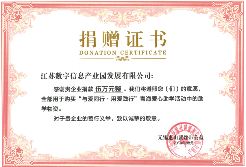 雖然社會在發展,人們的生活水平都在提高,但是還是有很多偏遠的地區,生活依然還處在較低水平,師資力量不足,教學設施嚴重匱乏。江蘇數字信息產業園不僅關注自身發展、區域經濟發展,同時也深切感受到應當承擔相應的社會責任。因此,在獲得這次公益活動信息之后,數字園便積極響應,委派園區財務總監作為代表不遠千里帶著數字園5萬元愛心捐款來到青海,一起參與到本次公益活動中,希望通過自身的力量,給孩子們帶去溫暖,為孩子們盡一份綿薄之力。