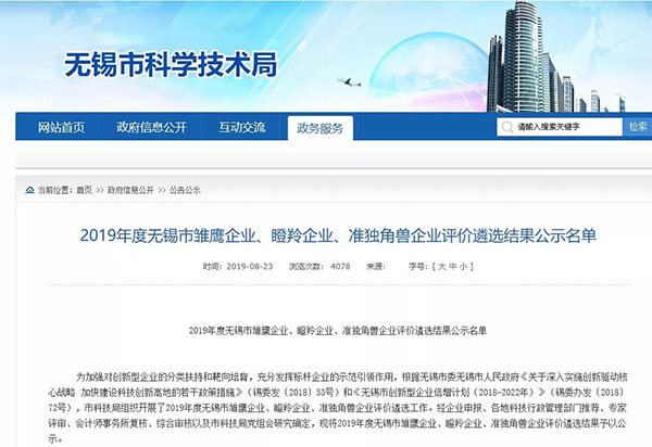 數字園4家企業成功通過2019年無錫市雛鷹企業、瞪羚企業、準獨角獸企業遴選