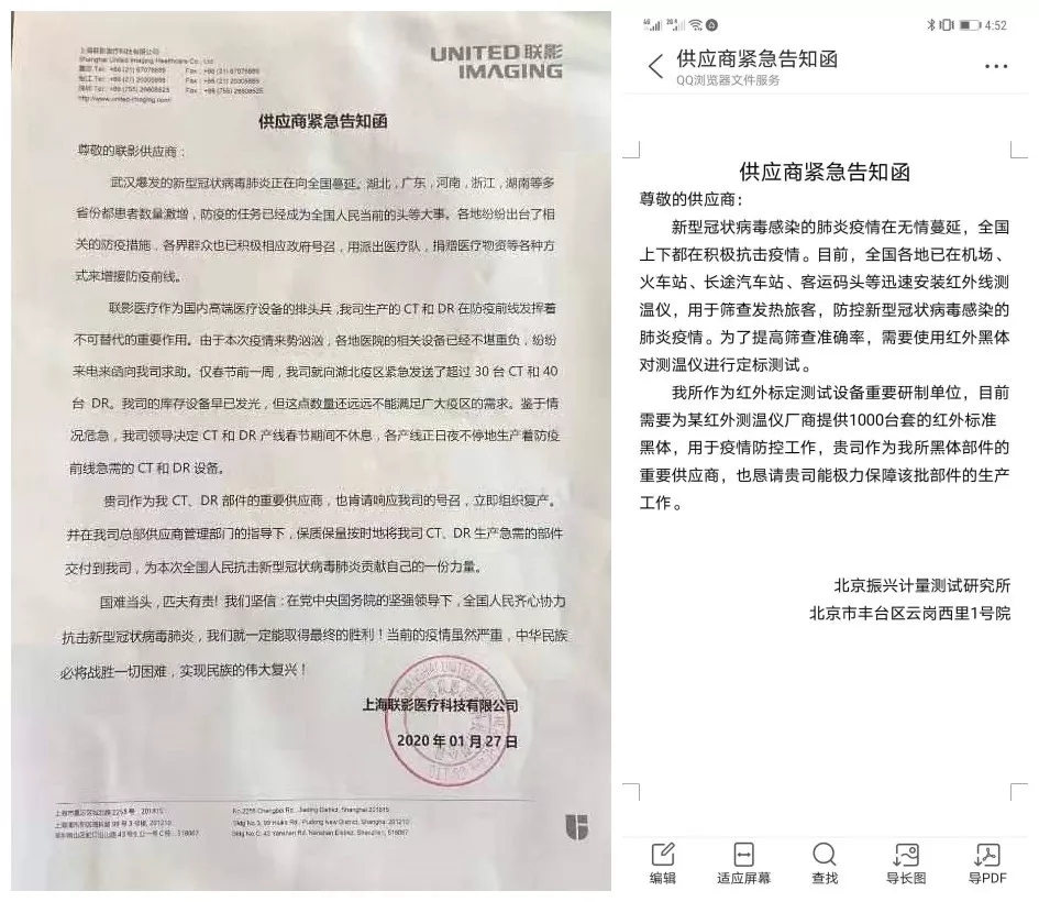 入園企業-無錫新輝龍科技有限公司是4家和疫情有關單位的部件供應商,其中北京振興計量測試研究所作為紅外標定測試設備的重要研制單位,為了疫情防控工作,需要緊急提供1000臺套的紅外標準黑體;上海聯影醫療科技有限公司是國內高端醫療設備的排頭兵,為了疫情防控工作,需要緊急生產一批CT、DR醫療設備;北京怡和嘉業醫療科技股份有限公司和江蘇魚躍醫療設備股份有限公司因疫情緊急,急需生產一批呼吸機。