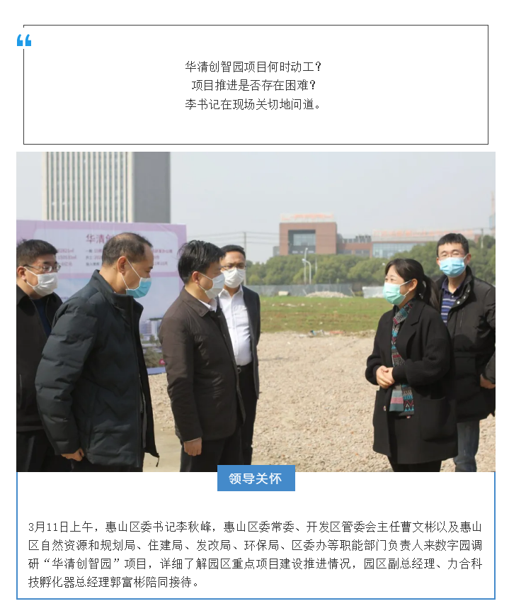 領導親切關懷 重啟“奮斗時間”| 惠山區委書記李秋峰實地調研數字園“華清創智園”項目