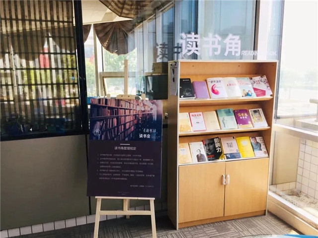 園區專門設立了讀書角,定期更新書庫,員工可以自行前往借閱書籍。