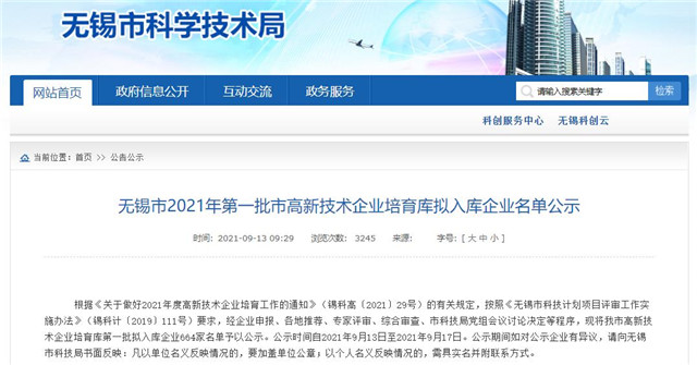 9月13日,無錫市科技局公示了無錫市2021年第一批市高新技術企業(yè)培育庫擬入庫名單,江蘇數(shù)字信息產(chǎn)業(yè)園6家企業(yè)成功入圍。