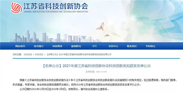 江蘇省科技創新獎由江蘇省科技創新協會設立,旨在表彰對促進產學研合作創新做出突出貢獻的單位、個人以及通過產學研合作取得的突出創新成果,充分調動社會各界在建立以企業為主體、市場為導向、產學研相結合的技術創新體系方面的積極性和創造性,提升創新型省份建設水平、為“強富美高”新江蘇建設注入新動能。