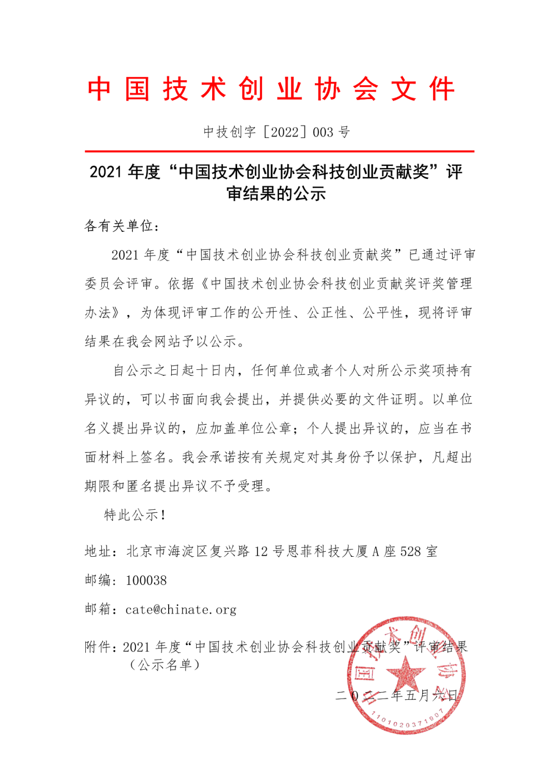 5月7日,中國(guó)技術(shù)創(chuàng)業(yè)協(xié)會(huì)公示了2021年度“中國(guó)技術(shù)創(chuàng)業(yè)協(xié)會(huì)科技創(chuàng)業(yè)貢獻(xiàn)獎(jiǎng)”名單,力合孵化器憑借專業(yè)的企業(yè)孵化服務(wù)能力、出色的孵化成果榮獲科技創(chuàng)業(yè)孵化貢獻(xiàn)獎(jiǎng)。
