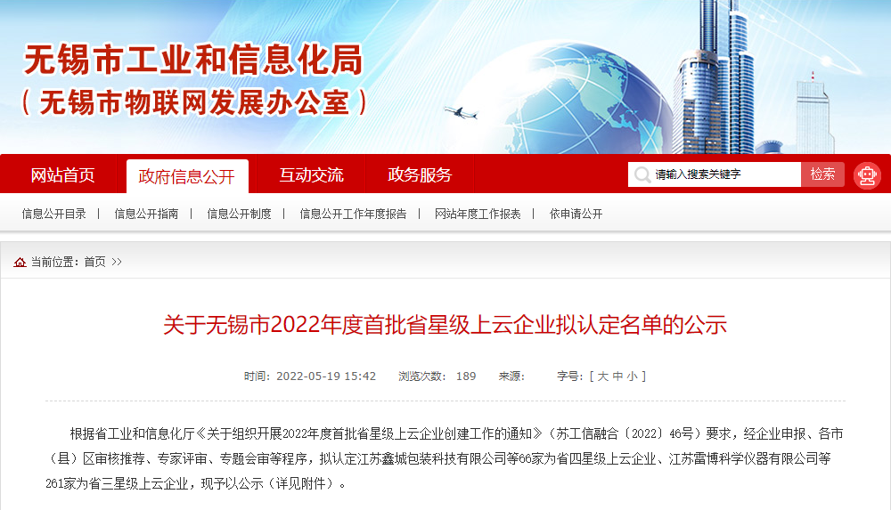 近日,無錫市工信局公示了2022年度首批省星級上云企業(yè)名單,7家入園企業(yè)成功通過江蘇省三星級上云企業(yè)認定。
