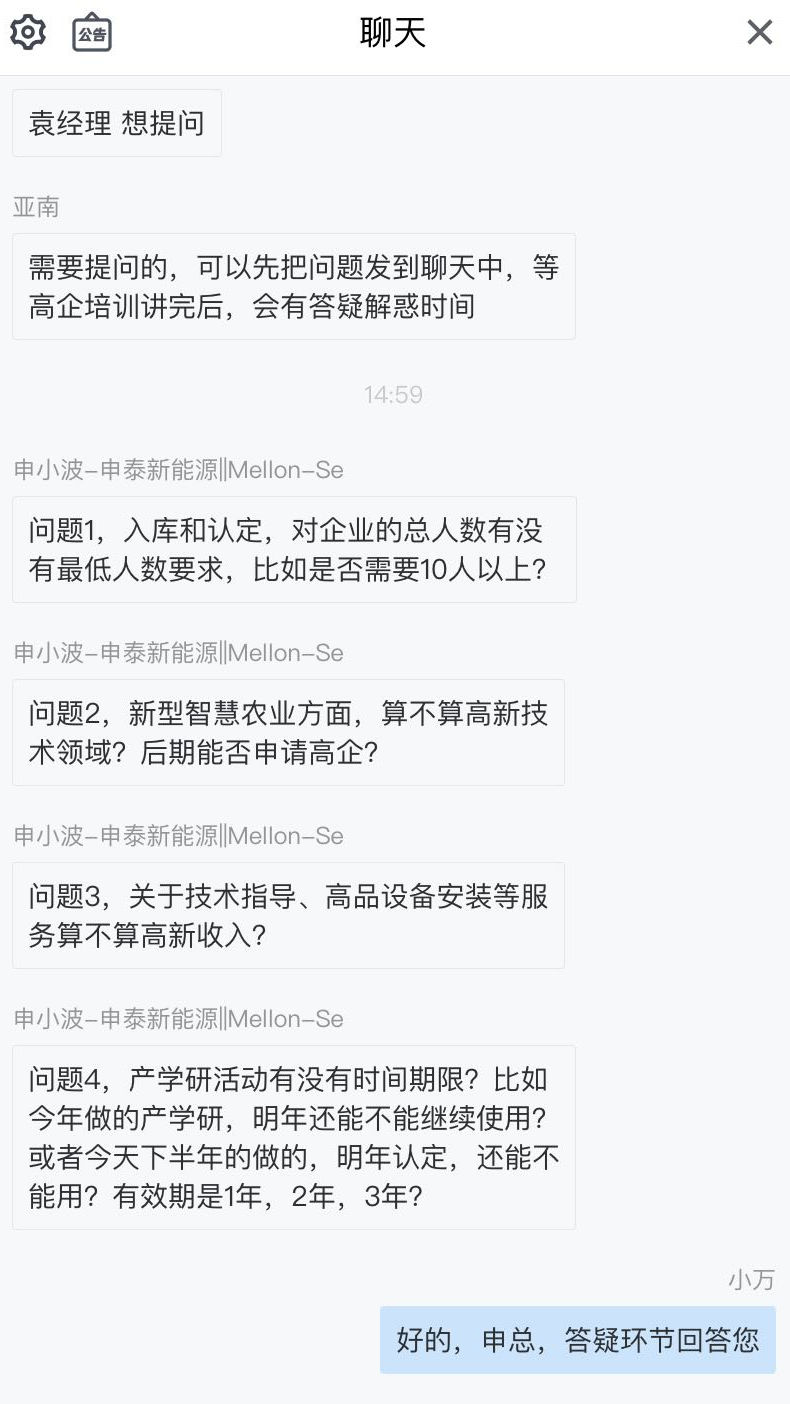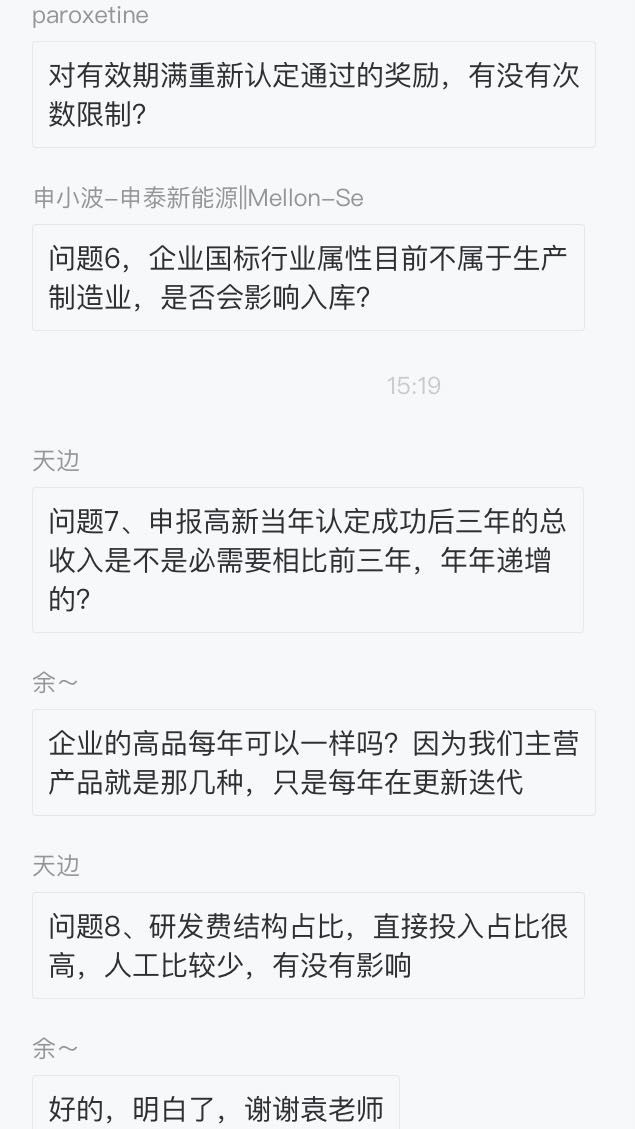 答疑環節,參會企業就如何提高研發費用合理性、近三年高企營收增長率等問題進行了咨詢,袁總一一作出解答,線上討論氛圍熱烈?;萆絽^第一批高企入庫網上申報將于5月20日截止,參會人員紛紛表示此次培訓舉辦及時、全面、細致,希望園區多組織此類活動。