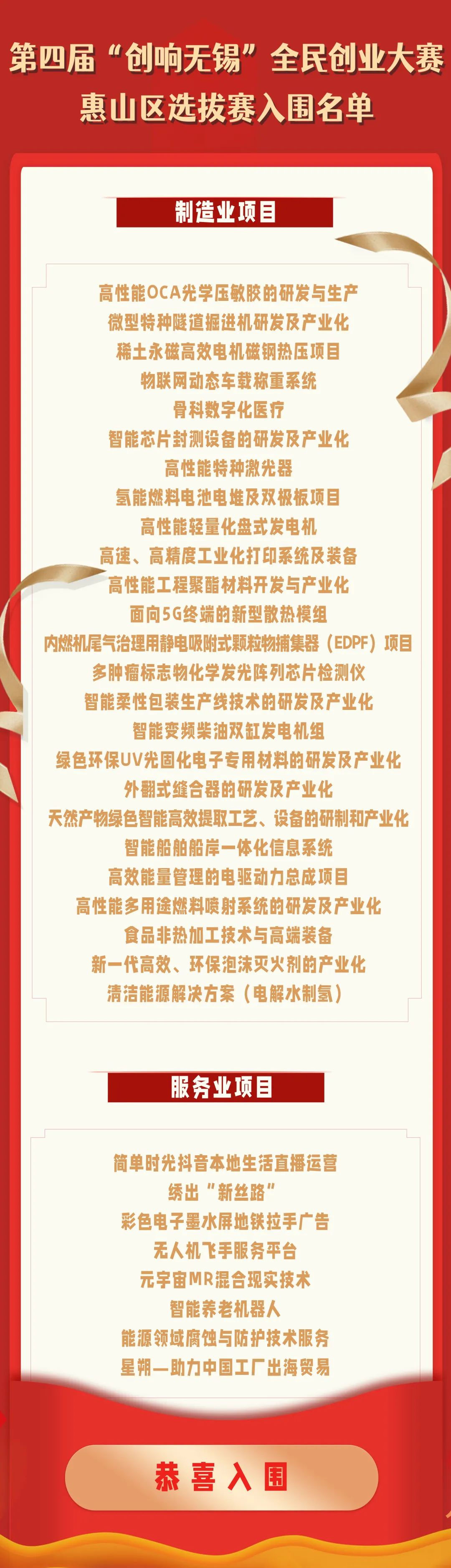 第四屆“創響無錫”全民創業大賽惠山區選拔賽參賽名單出爐啦!