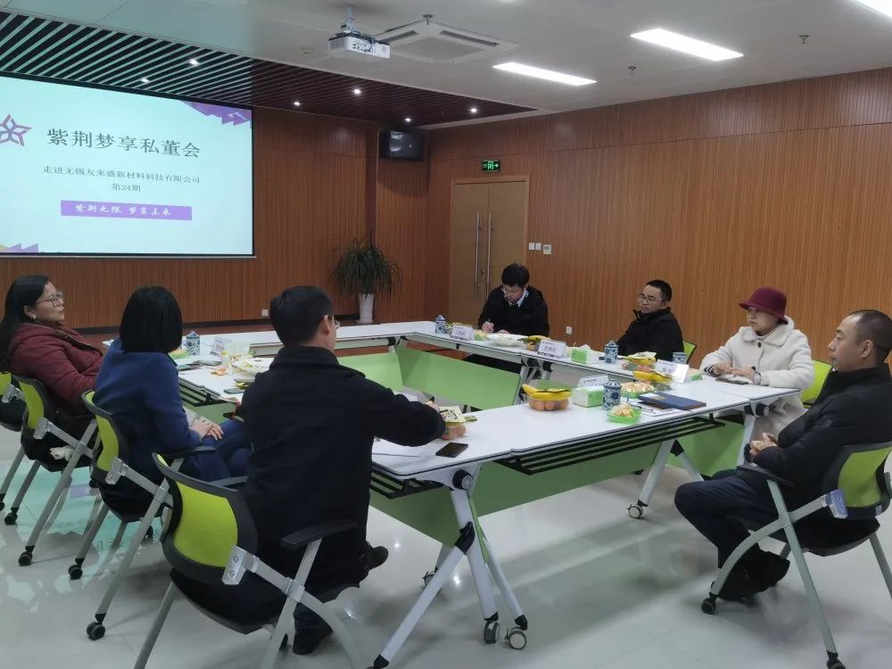 2021年1月26日下午,紫荊夢享私董會走進無錫友來盛新材料科技有限公司。參與的企業家有:無錫馬丁格林光伏科技有限公司總經理陳曉高、熊保鴻,東盛醫療科技(無錫)有限公司總經理沈棟松,江蘇中惠海越新材料有限公司總經理雷曉艷,帕菲德鋼鐵(無錫)有限公司總經理左剛成,無錫友來盛新材料科技有限公司總經理孔令華等6位優秀園區企業家均擁有豐富的外貿經驗,他們共同參與了本次私董會活動,并圍繞“疫情之下,2021年外貿企業如何克服難關?”這一議題展開了深入交流與探討。