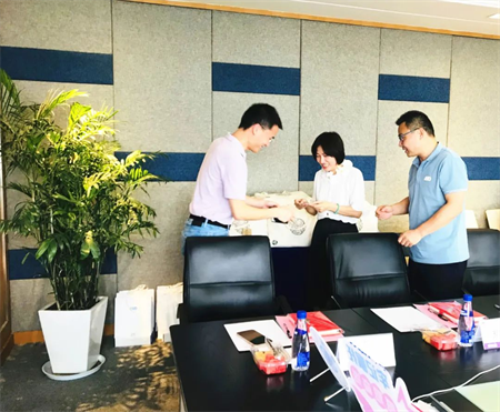 在江蘇慧眼數據科技股份有限公司總經理張麗秋,副總經理呂楠的全程陪同下,從產品陳列、榮譽室到技術研發辦公,大家邊看邊聽,對慧眼數據的認識進一步加深。慧眼數據成立之初,推出了商場客流分析解決方案;2020年,慧眼數據只用一周時間便研發生產出了配合疫情防控工作的“人臉識別額溫檢測系統”;數字化浪潮中,慧眼數據進一步推出了“智慧工廠解決方案”,通過創新驅動企業向前發展,對于正進行“智改數轉”的企業而言,具有一定的借鑒意義。