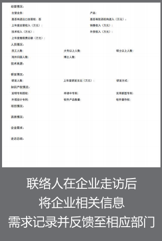 為建立園區(qū)與企業(yè)密切聯(lián)系的有效服務(wù)機(jī)制,更好地為入園企業(yè)提供優(yōu)質(zhì)高效的服務(wù),園區(qū)專門制定了《重點(diǎn)企業(yè)聯(lián)絡(luò)人制度》,安排專門人員定期進(jìn)行企業(yè)走訪,及時了解企業(yè)發(fā)展情況,用心為企業(yè)排憂解難。